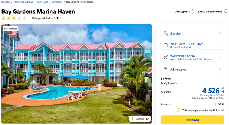 Cała oferta zbiera wiele pozytywnych opinii — atrakcyjna cena, wygodne warunki i bogaty program all inclusive to przepis na udany urlop. Taki wyjazd na Saint Lucię na długo zostaje w pamięci.
