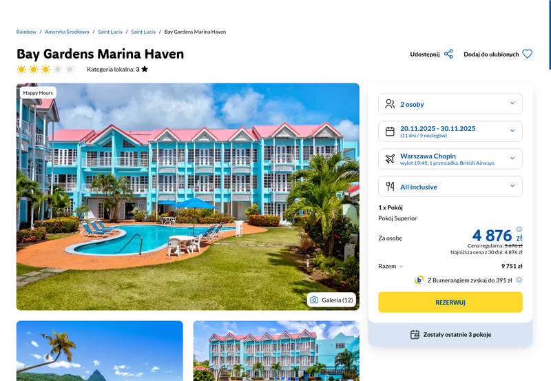 Cała oferta zbiera wiele pozytywnych opinii — atrakcyjna cena, wygodne warunki i bogaty program all inclusive to przepis na udany urlop. Taki wyjazd na Saint Lucię na długo zostaje w pamięci.