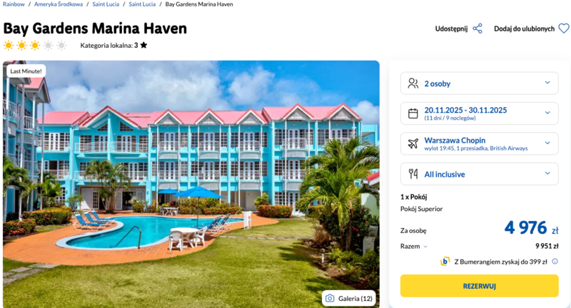 Cała oferta zbiera wiele pozytywnych opinii — atrakcyjna cena, wygodne warunki i bogaty program all inclusive to przepis na udany urlop. Taki wyjazd na Saint Lucię na długo zostaje w pamięci.