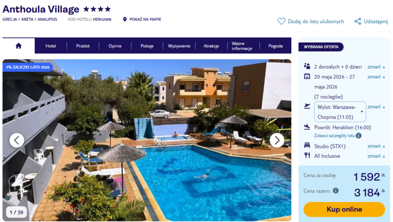Wyloty do Grecji z Warszawy, Katowic, Poznania, Gdańska, Rzeszowa i Wrocławia to świetna propozycja na słoneczny wypoczynek i chwilę wytchnienia od codzienności. Kierunek? Hotel Anthoula Village – miejsce, które może przypaść do gustu zarówno rodzinom, jak i tym, którzy po prostu chcą się zrelaksować w ciepłym klimacie pięknej greckiej wyspy. Szczególnie warto zwrócić uwagę na opcję all inclusive – to wygodne rozwiązanie, które pozwala skupić się wyłącznie na przyjemnościach.
