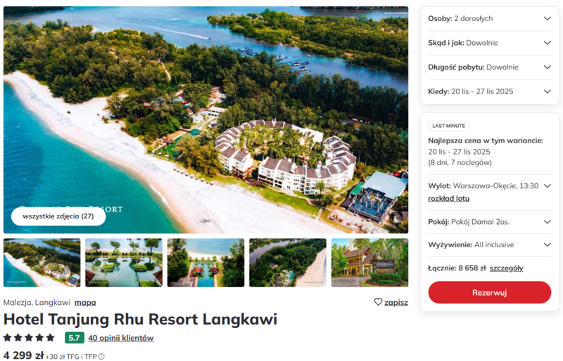 Wylot z Warszawy przenosi nas prosto do jednej z pereł Azji – malezyjskiej wyspy Langkawi. To właśnie tam, w otoczeniu tropikalnej zieleni i szerokich, piaszczystych plaż, czeka elegancki Tanjung Rhu Resort.