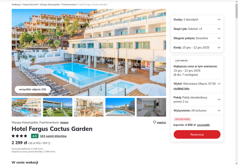 Aktualizacja: Poczuj kanaryjską wolność: Fuerteventura, 4* hotel z all inclusive od 2299 zł
