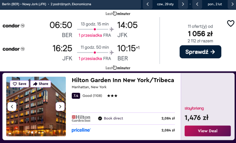 Proponowany lot przyciąga uwagę znakomitą ceną, zwłaszcza jeśli porówna się ją z typowymi kosztami takiej podróży. W planie znajduje się jedna przesiadka we Frankfurcie nad Menem. A potem już tylko kilka godzin i lądujemy w Nowym Jorku – mieście, które potrafi oczarować o każdej porze roku.Każdy czas to naprawdę przyjemny czas na odkrywanie amerykańskiej metropolii. Miasto sprzyja długim spacerom – czy to po Central Parku, czy przez tętniące życiem dzielnice. W tym okresie nie brakuje też ciekawych wydarzeń kulturalnych, pokazów czy wystaw, które dodają miastu jeszcze więcej energii.