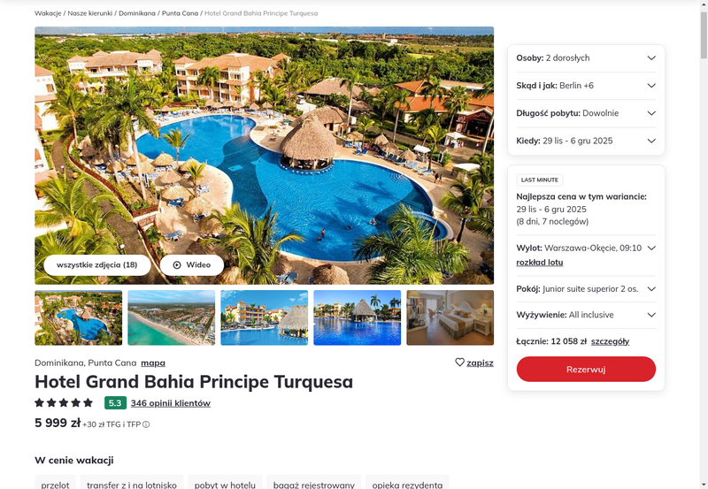 Aktualizacja: Dominikana last minute: Znakomity 5* hotel z bogatym all inclusive za 5099 zł