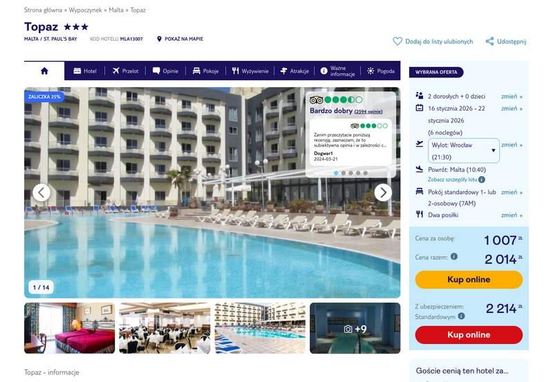 Aktualizacja: Malta: wypoczynek w 3* hotelu z wyżywieniem od 993 zł