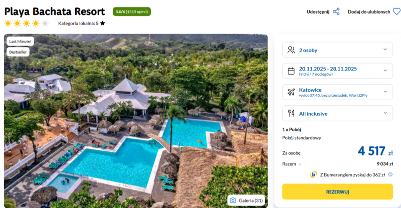 Misją Lastminuter.pl jest przedstawienie Ci najlepszych zdaniem naszej redakcji okazji na podróże. Opisujemy oferty znalezione przez nas w internecie i wskazujemy adresy internetowe, pod którymi samodzielnie możesz wykupić podróż lub elementy podróży. Ceny w artykułach są aktualne w chwili publikacji. Możemy otrzymywać wynagrodzenie od partnerów handlowych, do których Cię przekierowujemy. Nie ma to wpływu na cenę Twojej wycieczki. Powielanie publikacji zabronione.