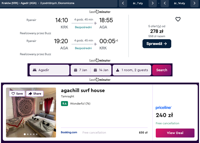 Misją Lastminuter.pl jest przedstawienie Ci najlepszych zdaniem naszej redakcji okazji na podróże. Opisujemy oferty znalezione przez nas w internecie i wskazujemy adresy internetowe, pod którymi samodzielnie możesz wykupić podróż lub elementy podróży. Ceny w artykułach są aktualne w chwili publikacji. Możemy otrzymywać wynagrodzenie od partnerów handlowych, do których Cię przekierowujemy. Nie ma to wpływu na cenę Twojej wycieczki. Powielanie publikacji zabronione.