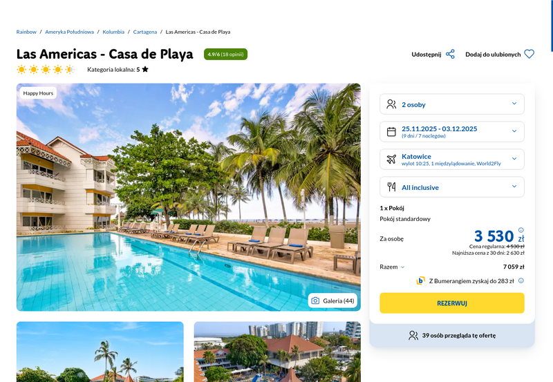 Aktualizacja: Kolumbia last minute w świetnej cenie: 5* hotel z all inclusive przy plaży za 3330 zł