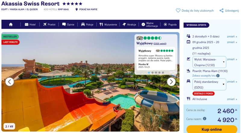 Biorąc pod uwagę standard hotelu, bogatą ofertę all inclusive oraz świetne warunki do wypoczynku, taka propozycja wygląda naprawdę zachęcająco. Jeśli marzysz o spokojnych wczasach w pięknym miejscu, to może być Twój moment na złapanie oddechu i zebranie nowych wspomnień.
