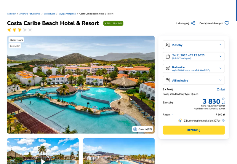 Ta oferta świetnie trafia w gusta tych, którzy marzą o egzotycznych wczasach bez nadwyrężania budżetu. Niezależnie od tego, czy planujesz słodkie nic nierobienie, czy chcesz aktywnie spędzić czas, na Wyspie Margarita znajdziesz wszystko, czego potrzeba. Przyjemna temperatura, życzliwi ludzie i piękne widoki sprawią, że trudno będzie chcieć wracać do codzienności.