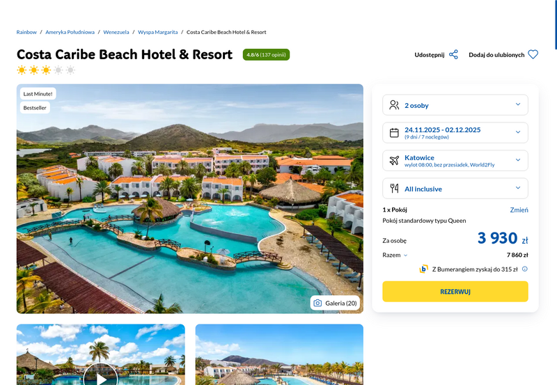 Aktualizacja: Odkryj dzikie piękno Wenezueli: Komfortowy hotel z all inclusive za 3830 zł