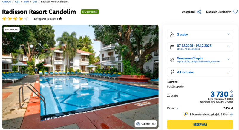 Wylot zaplanowany jest z Warszawy prosto do Goa w Indiach – kierunku, który od lat przyciąga miłośników egzotyki i słońca.