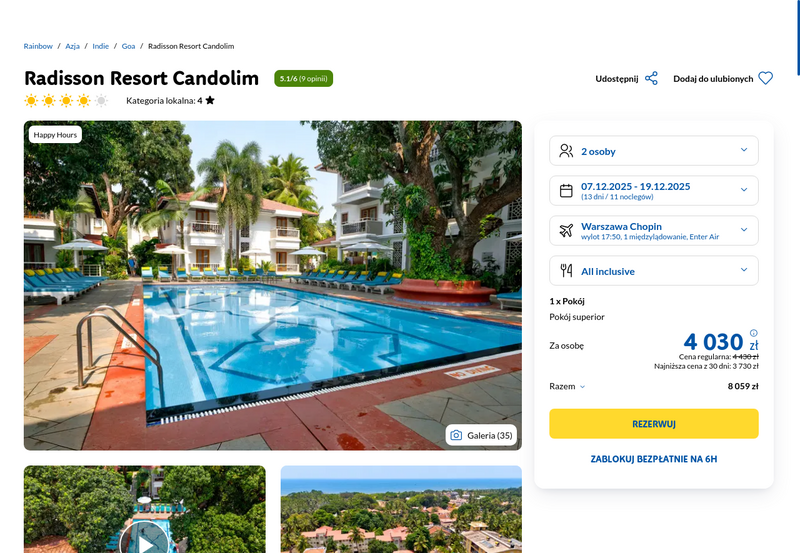 Aktualizacja: Indie (Goa): 11 dni w 4* Radisson Resort Candolim z all inclusive za 3730 zł