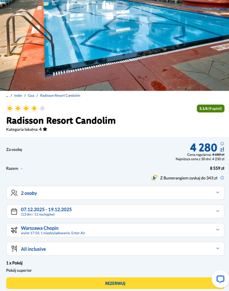 Wylot zaplanowany jest z Warszawy prosto do Goa w Indiach – kierunku, który od lat przyciąga miłośników egzotyki i słońca.