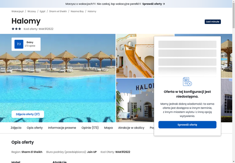 Niedostępność oferty została udokumentowana zrzutem ekranu.