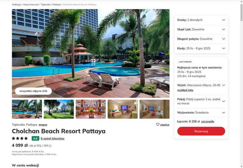 Aktualizacja: Długi wypoczynek w Tajlandii: Pattaya na 2 tygodnie za 3699 zł (ze śniadaniami)