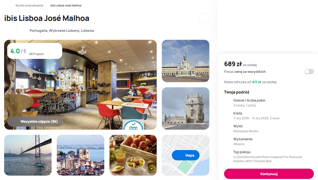 Hotel ibis Lisboa José Malhoa cieszy się dobrą opinią wśród podróżnych – głównie za sprawą swojej lokalizacji blisko centrum i stacji metra. Dzięki temu łatwo można dotrzeć do najważniejszych miejsc w mieście. Pokoje są wygodne, a personel zbiera pochwały za serdeczne podejście i pomocność. Rodziny często wybierają ten hotel ze względu na przyjazne udogodnienia, jak darmowe łóżeczka dziecięce czy dźwiękoszczelne wnętrza, które zapewniają spokojny sen.