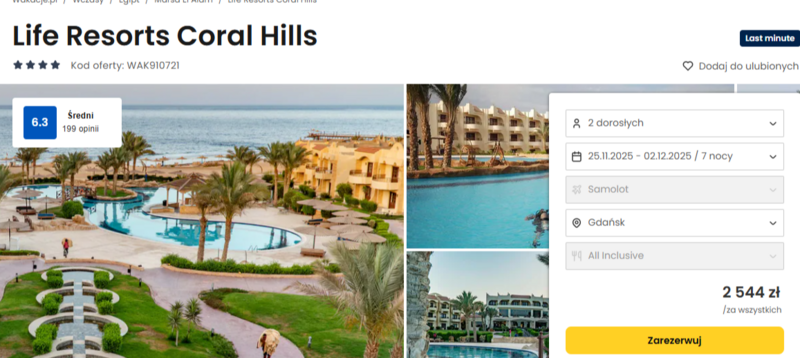 Loty z Gdańska, Katowic lub Warszawy do Marsa Alam, gdzie czeka na gości 4* hotel Life Resorts Coral Hills. To propozycja dla tych, którzy szukają słońca, ciepłego morza i odrobiny egzotyki.