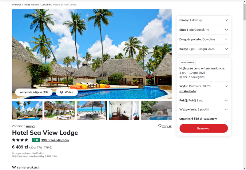 Aktualizacja: Zanzibar last minute: 4* hotel z wyżywieniem za 3599 zł