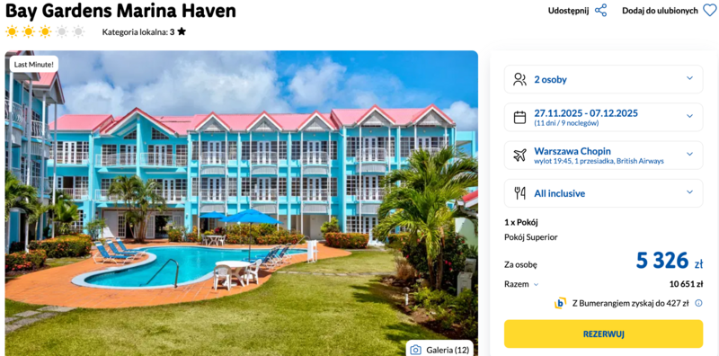 Wylot z Warszawy to świetna okazja, by na chwilę oderwać się od codzienności i zanurzyć się w tropikalnym klimacie. Proponowany pobyt w hotelu Bay Gardens Marina Haven to propozycja dla osób szukających wygody i przyjaznej atmosfery – miejsce to cieszy się dobrą opinią, głównie dzięki miłej obsłudze i zadbanym wnętrzom.