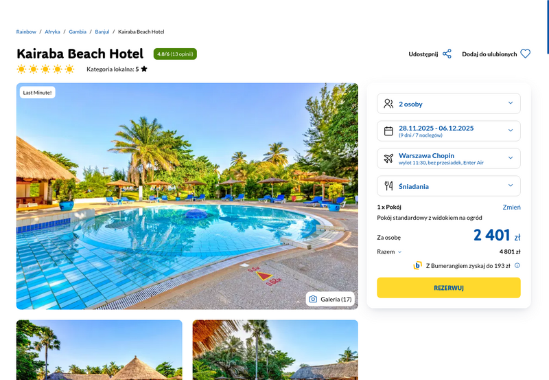 Aktualizacja: Odpoczynek w Afryce: Gambia, 5* hotel ze śniadaniami od 2230 zł