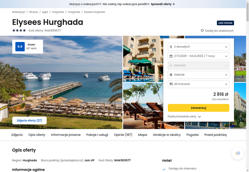 Misją Lastminuter.pl jest przedstawienie Ci najlepszych zdaniem naszej redakcji okazji na podróże. Opisujemy oferty znalezione przez nas w internecie i wskazujemy adresy internetowe, pod którymi samodzielnie możesz wykupić podróż lub elementy podróży. Ceny w artykułach są aktualne w chwili publikacji. Możemy otrzymywać wynagrodzenie od partnerów handlowych, do których Cię przekierowujemy. Nie ma to wpływu na cenę Twojej wycieczki. Powielanie publikacji zabronione.