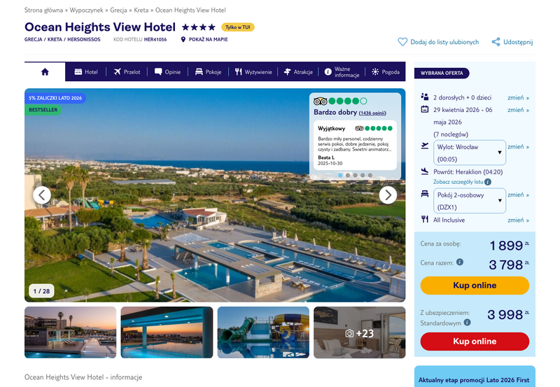 Aktualizacja: Majówka na greckiej wyspie: Kreta, 4* hotel z all inclusive od 1809 zł