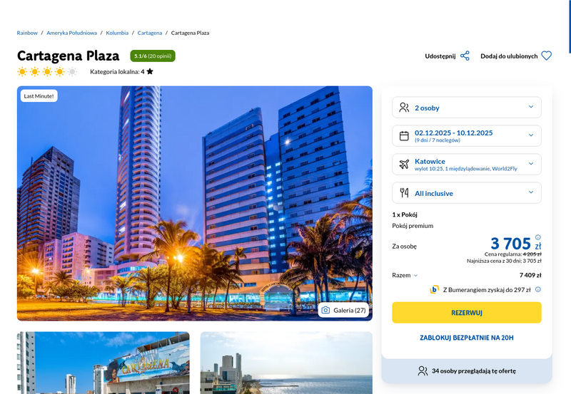 Aktualizacja: Tropikalny klimat i niezapomniane widoki: Kolumbia, 4* hotel z all inclusive za 3716 zł