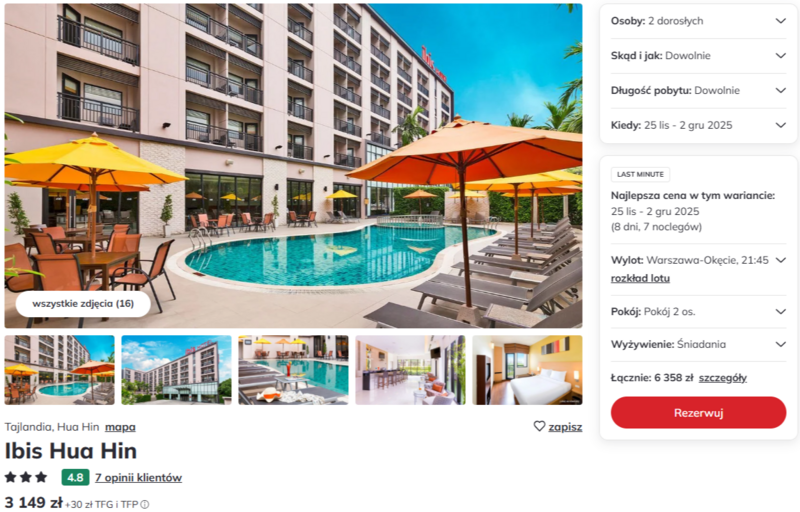 Wylot z Warszawy do Bangkoku to świetna okazja, by zanurzyć się w klimacie Azji Południowo-Wschodniej i odpocząć w miejscu, które łączy relaks z możliwością odkrywania nowych zakątków. W ofercie znalazł się pobyt w hotelu Ibis Hua Hin – to miejsce, które regularnie zbiera dobre opinie i może pochwalić się przyjemną atmosferą oraz korzystnym położeniem.