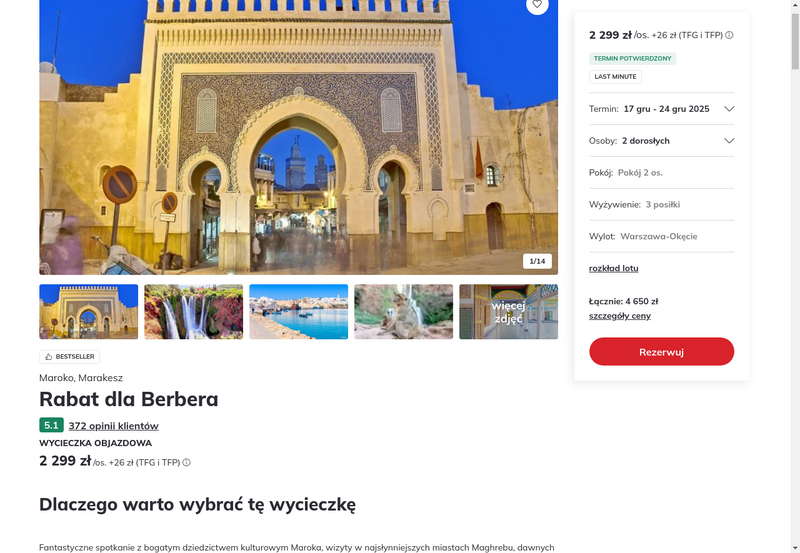 Misją Lastminuter.pl jest przedstawienie Ci najlepszych zdaniem naszej redakcji okazji na podróże. Opisujemy oferty znalezione przez nas w internecie i wskazujemy adresy internetowe, pod którymi samodzielnie możesz wykupić podróż lub elementy podróży. Ceny w artykułach są aktualne w chwili publikacji. Możemy otrzymywać wynagrodzenie od partnerów handlowych, do których Cię przekierowujemy. Nie ma to wpływu na cenę Twojej wycieczki. Powielanie publikacji zabronione.