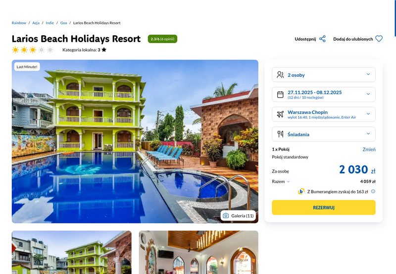 Aktualizacja: Wczasy w Indiach (Goa) w supercenie: 10 dni w 3* hotelu ze śniadaniami za 1730 zł!