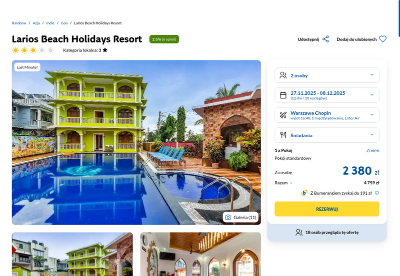 Aktualizacja: Wczasy w Indiach (Goa) w supercenie: 10 dni w 3* hotelu ze śniadaniami za 1980 zł!