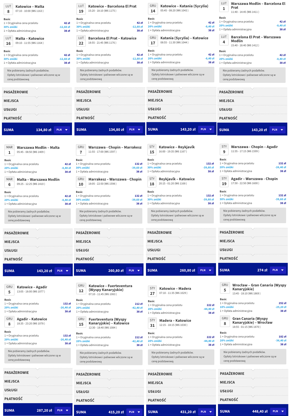 Agadir, Barcelona, Fuerteventura, Gran Canaria, Madera, Marrakesz, Sycylia, Wyspy Kanaryjskie, Katowice, Warszawa, Wrocław