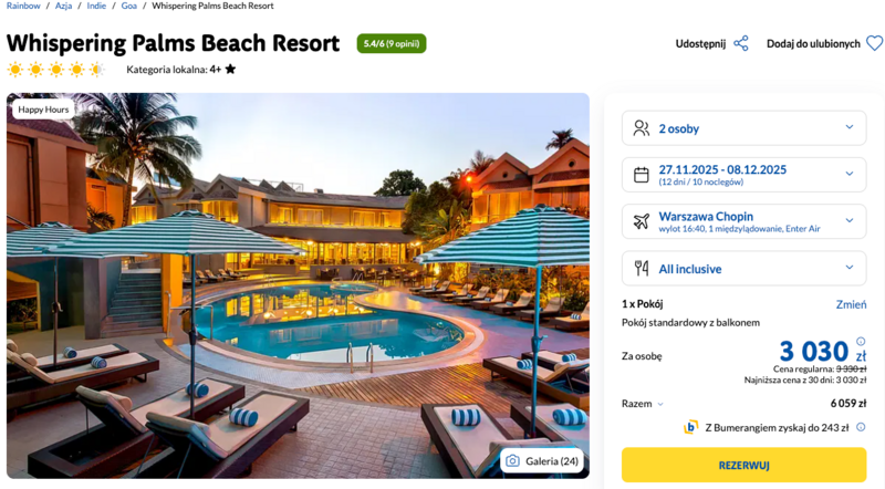 Propozycja wypoczynku w Whispering Palms Beach Resort to interesująca opcja – zarówno dla tych, którzy szukają pełnego relaksu, jak i tych, którzy chcą eksplorować uroki Goa. Dobre recenzje potwierdzają, że miejsce spełnia oczekiwania wielu turystów, więc jeśli marzy Ci się egzotyczna przerwa w słonecznej scenerii, warto rozważyć tę ofertę.
