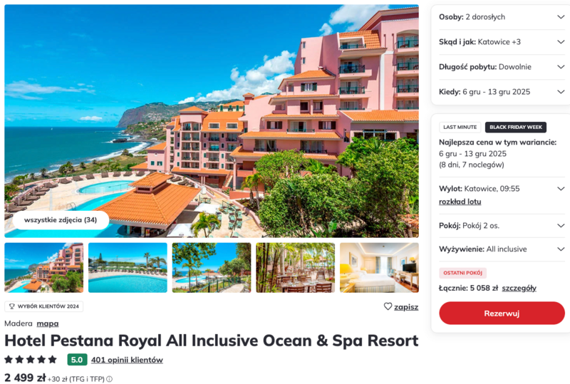 Madera w wersji lux z widokami na ocean: 5* hotel z all inclusive od 2499 zł