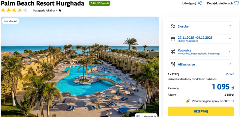 Egipt last minute: 4* hotel z all inclusive od 1095 zł