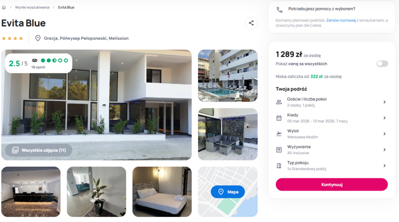 Wyloty z Katowic, Krakowa, Warszawy, Warszawy (Modlin) i Wrocławia. Tu, zaledwie kilka kroków od plaży Pefkias, czeka hotel Evita Blue — czterogwiazdkowy obiekt, który może być ciekawą propozycją dla osób szukających relaksu blisko morza.