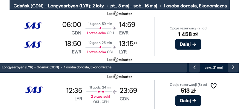 - zarezerwuj loty z Longyearbyen do Gdańska za 513 zł »