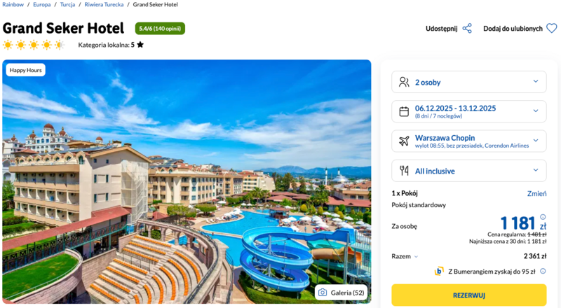 Misją Lastminuter.pl jest przedstawienie Ci najlepszych zdaniem naszej redakcji okazji na podróże. Opisujemy oferty znalezione przez nas w internecie i wskazujemy adresy internetowe, pod którymi samodzielnie możesz wykupić podróż lub elementy podróży. Ceny w artykułach są aktualne w chwili publikacji. Możemy otrzymywać wynagrodzenie od partnerów handlowych, do których Cię przekierowujemy. Nie ma to wpływu na cenę Twojej wycieczki. Powielanie publikacji zabronione.