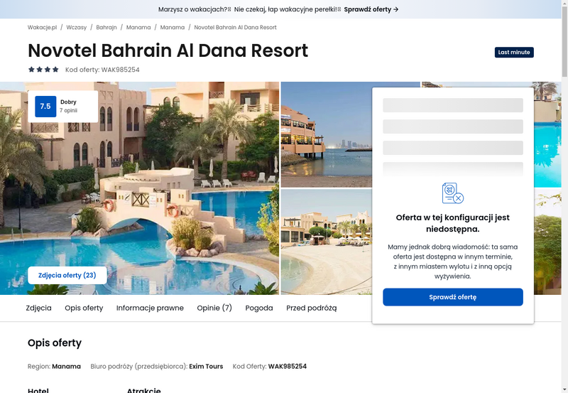 Niedostępność oferty została udokumentowana zrzutem ekranu.