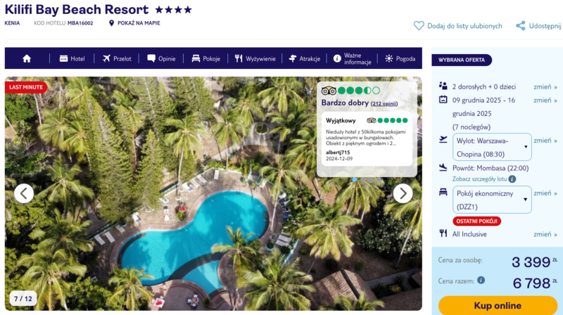 Oferta tygodniowego pobytu w Kilifi Bay Beach Resort prezentuje się naprawdę atrakcyjnie – zarówno pod względem jakości, jak i lokalizacji. To dobra okazja, by odkryć uroki Kenii z pełnym komfortem i swobodą, jaką zapewnia all inclusive.