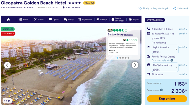 Biorąc pod uwagę lokalizację, udogodnienia i formułę all inclusive, ta propozycja może przypaść do gustu osobom szukającym wygodnego, a jednocześnie urozmaiconego wypoczynku. Jeśli marzysz o słońcu, plaży i chwili tylko dla siebie – warto rozważyć ten kierunek.