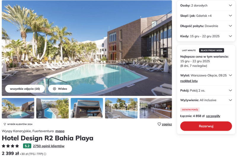 Co ważne – przy takiej lokalizacji, warunkach i bogatej formule all inclusive, cena wcale nie odstrasza. W zestawieniu z innymi ofertami w regionie wypada naprawdę korzystnie. Fuerteventura z hotelem Design R2 Bahia Playa to świetna opcja zarówno dla tych, którzy szukają spokoju, jak i tych, którzy chcą po prostu uciec w cieplejsze miejsce na kilka dni odpoczynku.
