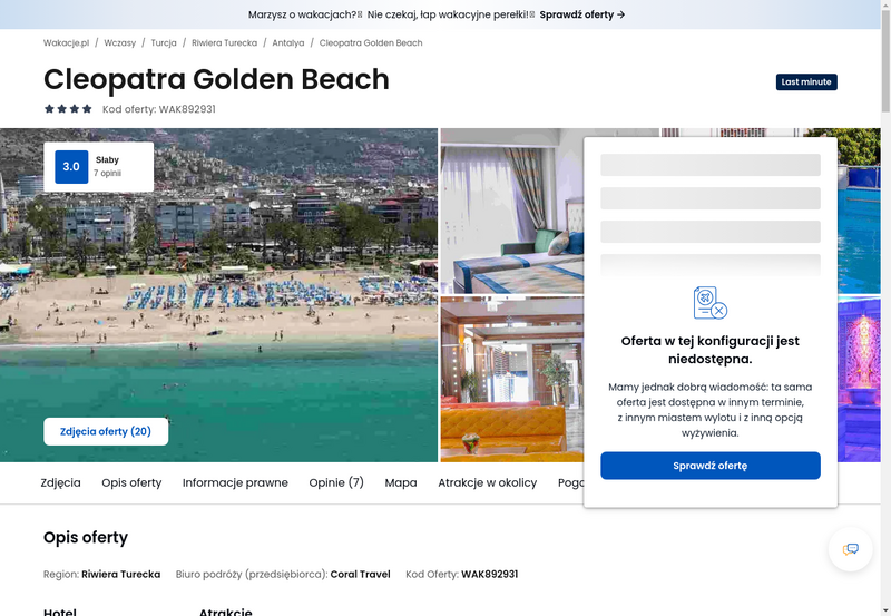 Niedostępność oferty została udokumentowana zrzutem ekranu.