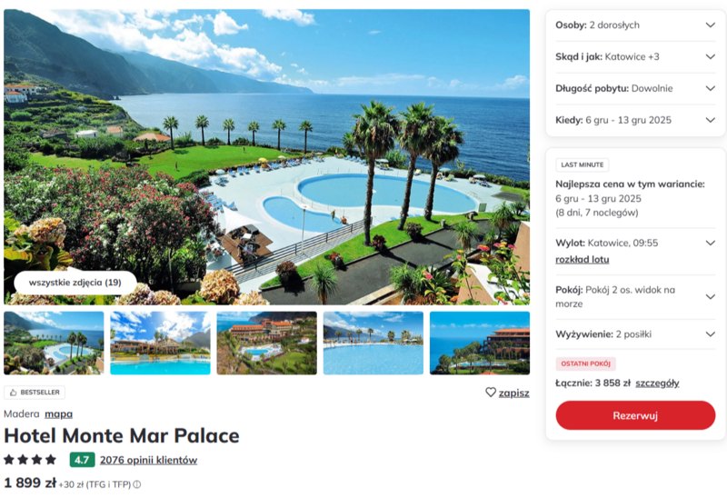 Wyloty do Funchal z Katowic lub Warszawy. Tym razem celem podróży jest 4* hotel Monte Mar Palace położony na portugalskiej Maderze.