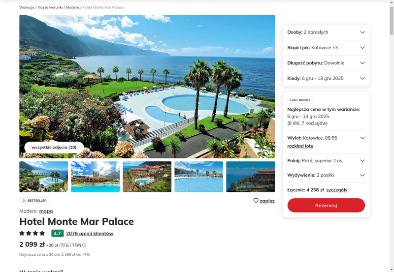 Aktualizacja: Madera: tydzień w 4* hotelu z wyżywieniem od 1899 zł