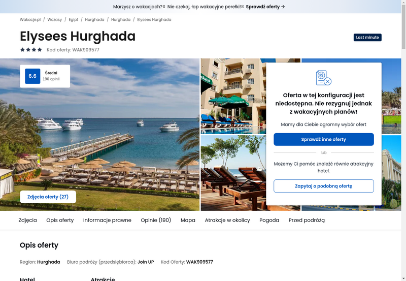 Niedostępność oferty została udokumentowana zrzutem ekranu.