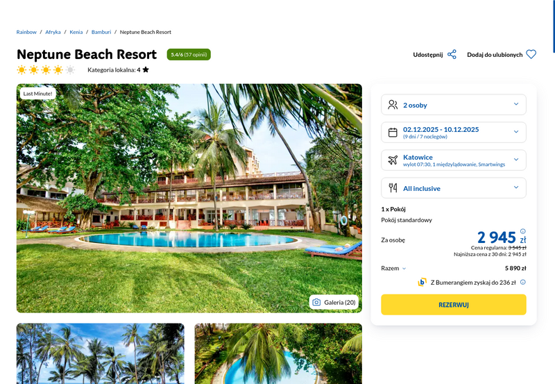 Egzotyka last minute: Mombasa, 4* hotel z all inclusive od 2945 zł