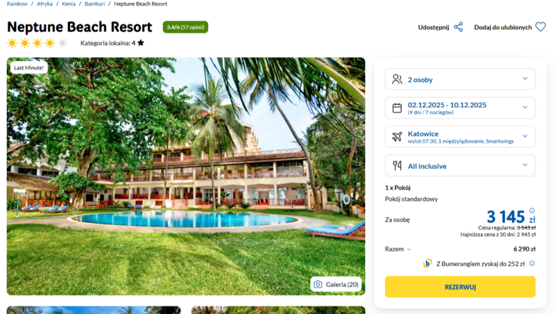 Egzotyka last minute: Mombasa, 4* hotel z all inclusive od 3145 zł