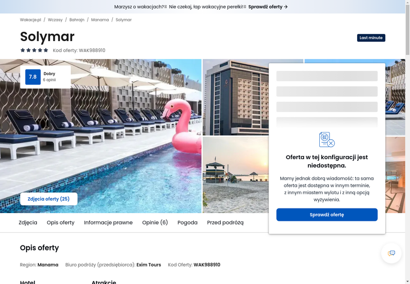 Niedostępność oferty została udokumentowana zrzutem ekranu.